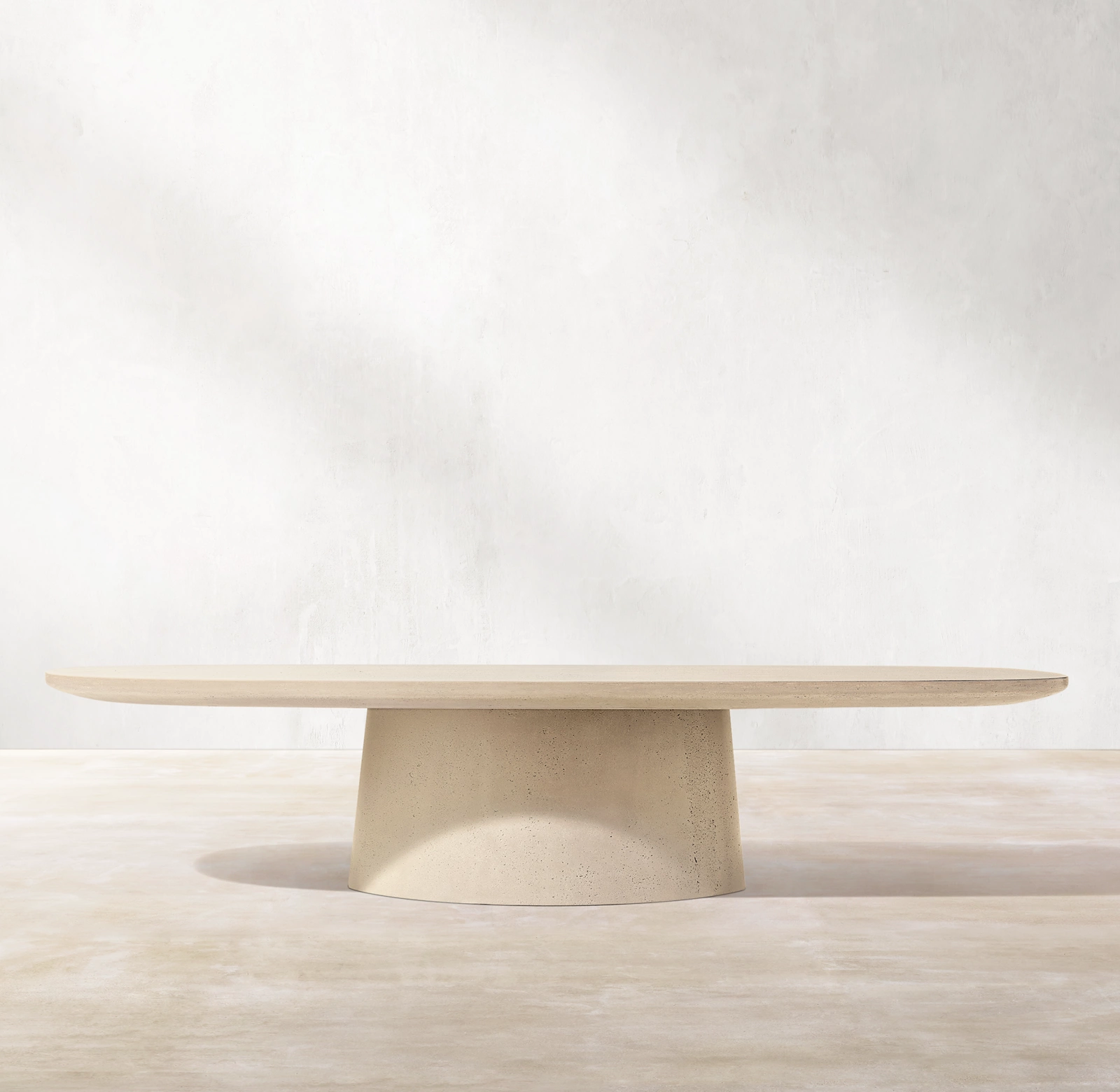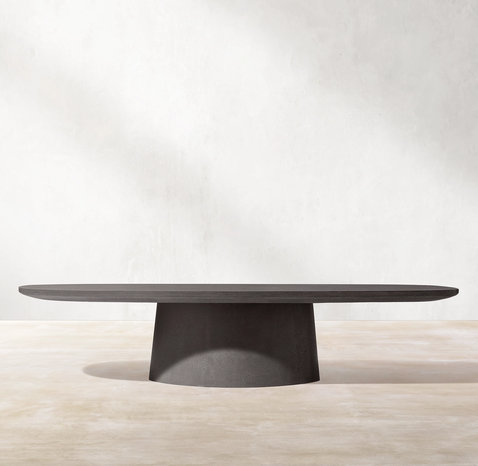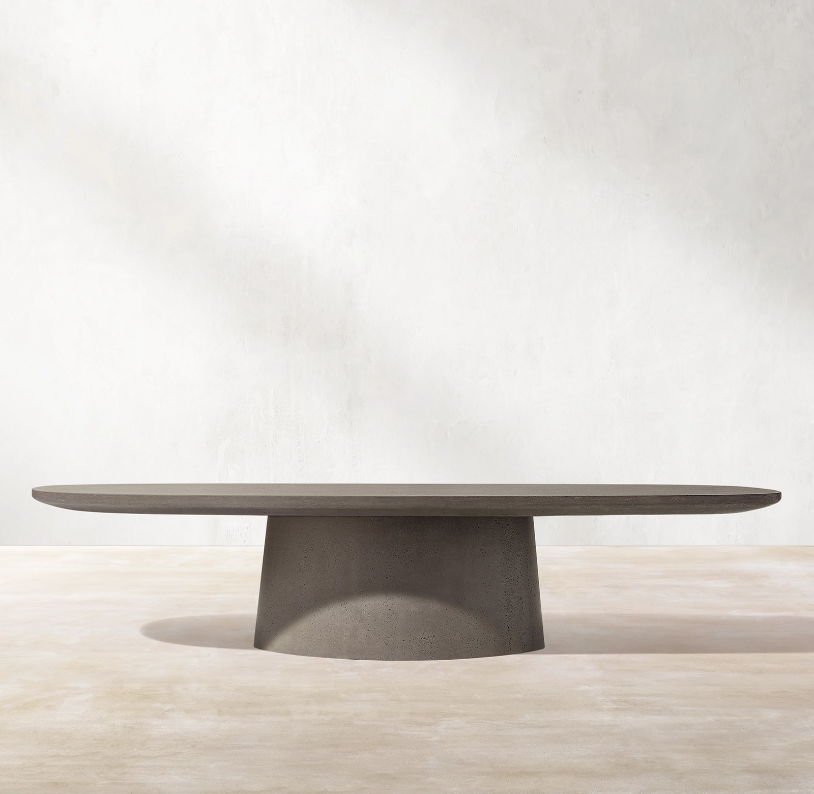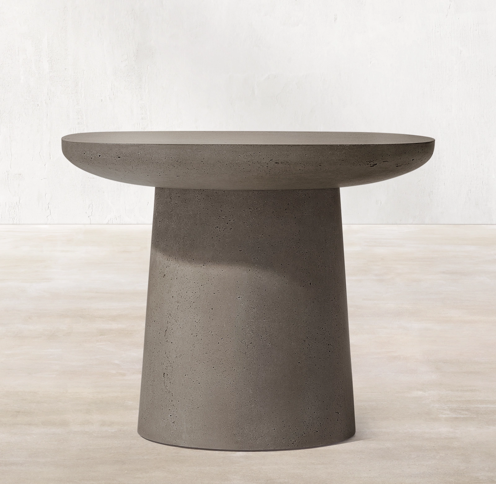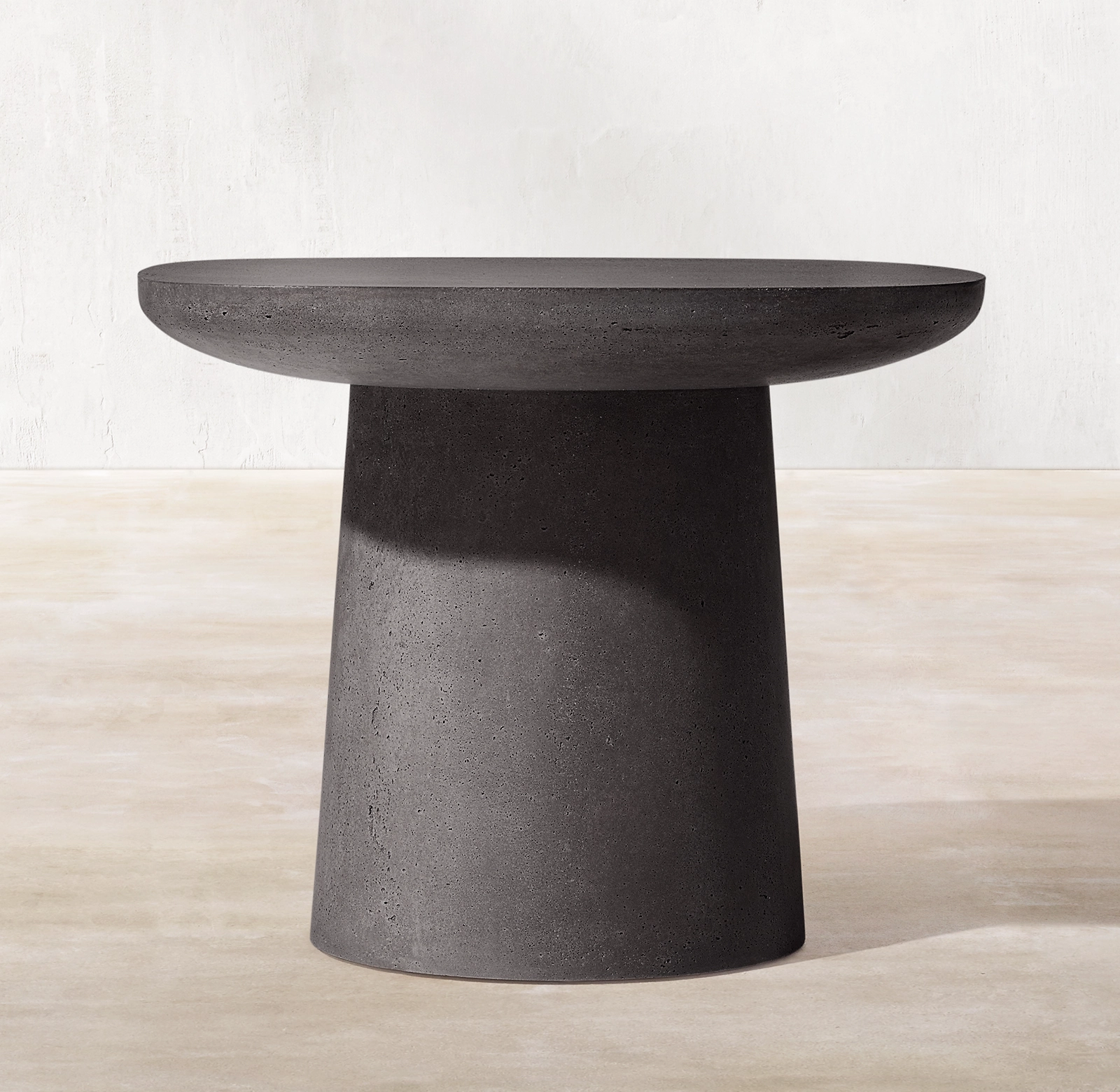 Inspired by a stone's organic qualities, the Caprera side table collection for Restoration Hardware (RH) is a study in contrasts. Hand-molded from concrete, the solid, monolithic silhouette is counterbalanced by the soft curves of its tapered pedestal base and smooth, rounded top, lending a sense of lightness and a calibrated proportion to the piece.